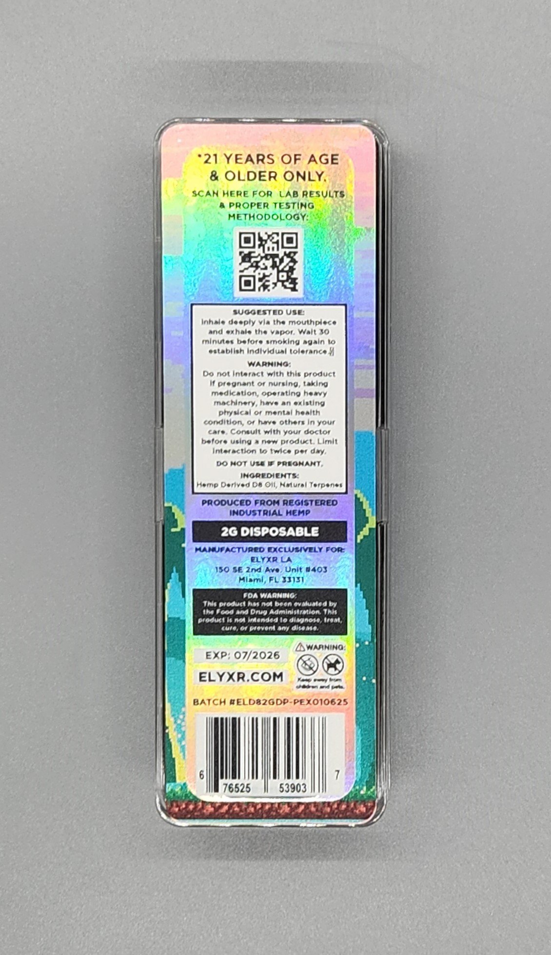 Elyxr LA premium Delta 8 2g disposable vape is of the highest quality and uses only the best ingredients. Enjoy the effects of Delta 8 in a premium 2g disposable vape device. Elyxr LA 2g vape device is top notch!  It comes in a slick hard case and won’t let you down.  It’s rechargeable, but you won’t need to.   The Pineapple Express strain is a sativa with a smooth flavor and a great euphoric feel.  You’ll enjoy every hit!