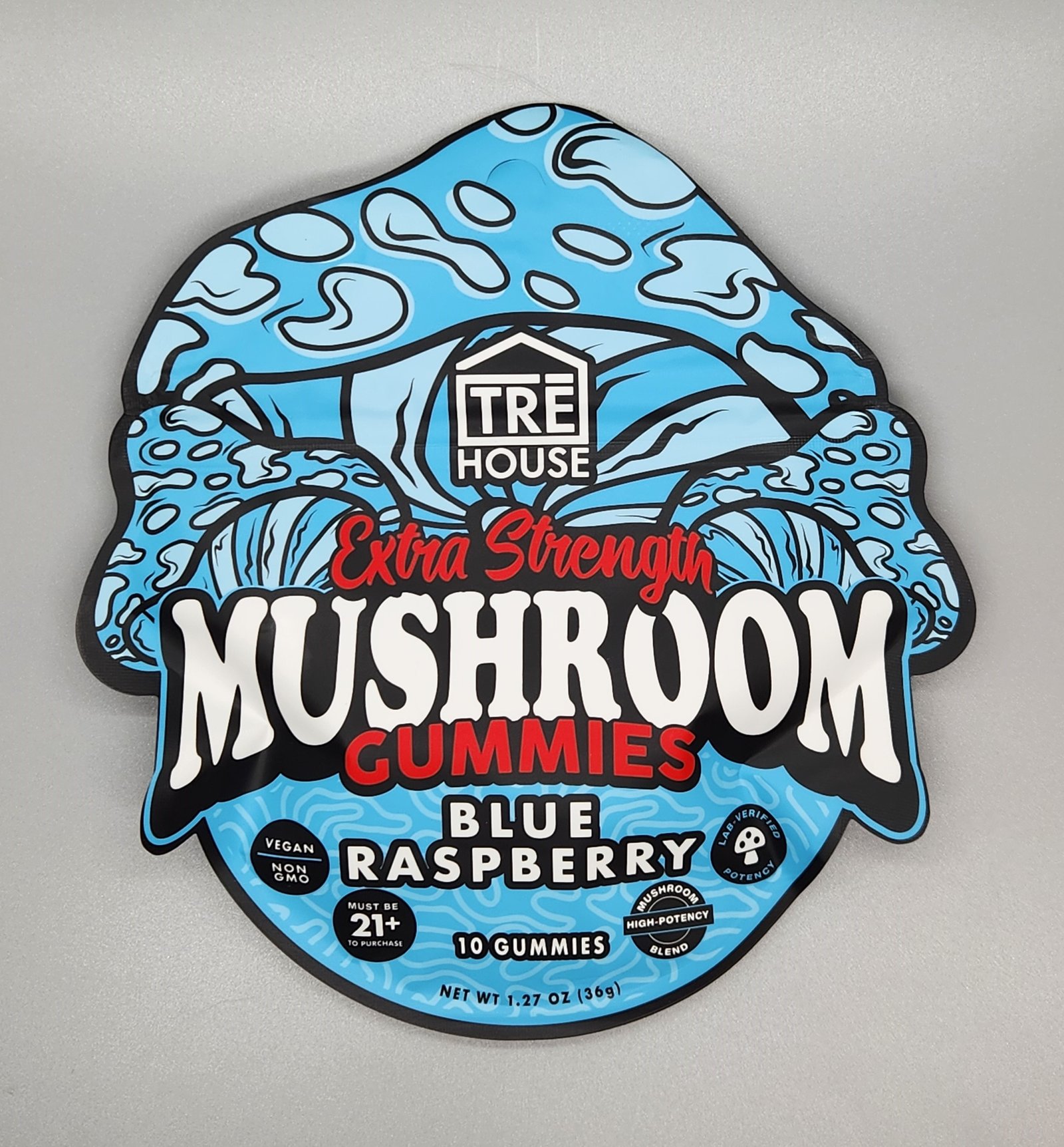 TRE House Magic Mushroom vegan Blue Raspberry Extra Strength Gummies will melt your mind in a wave of mushroom euphoria.